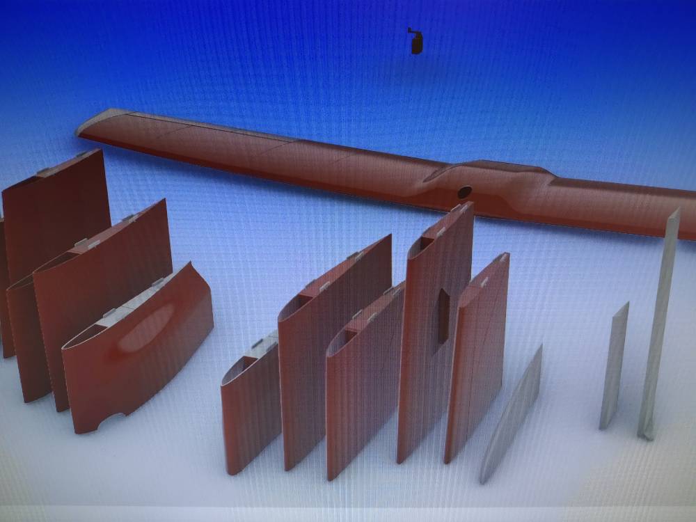 Pokusy s tiskem a lidlem... kabinka, cosi tištěného na motor dys d 2225,set prototypového křídla s přechodem na lid díru v trupu,první pokusné kousky...