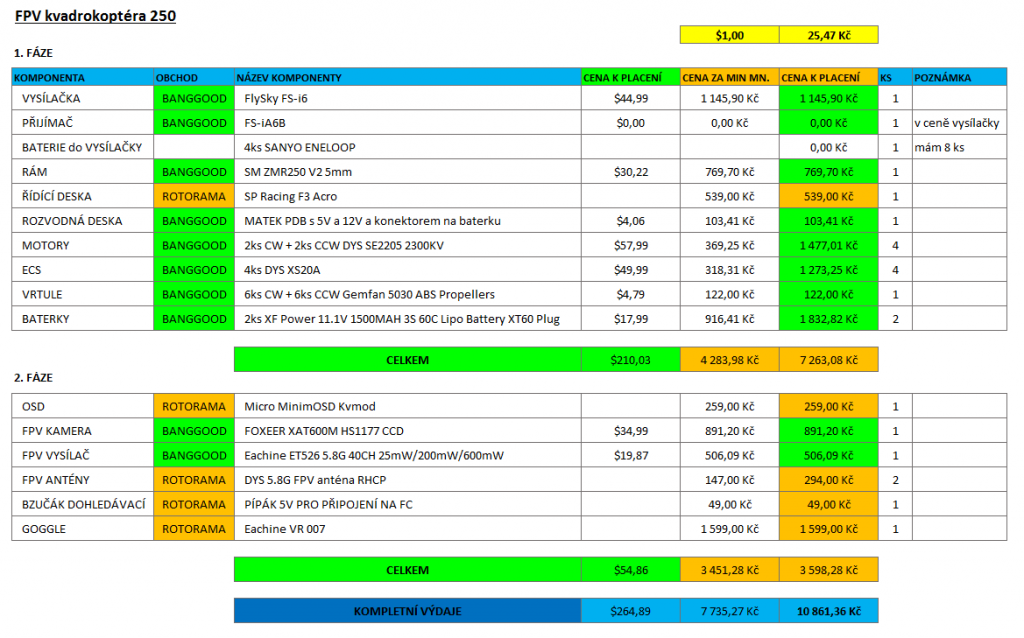 Re: Soupis dílů - FPV racer 250 pro začátečníka
