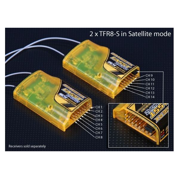 Mám dlouhodobě odzkoušenou tu osmikanálovou Coronu, mám ji v elektrovětroni 2,5m, nastavený F/S, lítání na hranici viditelnosti a bez problémů. Ten 14k jsem měl v elektro Mustangu co jsem stavěl kolegovi, byl to 1,7m od Hangár 9, zalítaval jsem mu to a taky nebyl problém, takže asi bych se toho asi ...