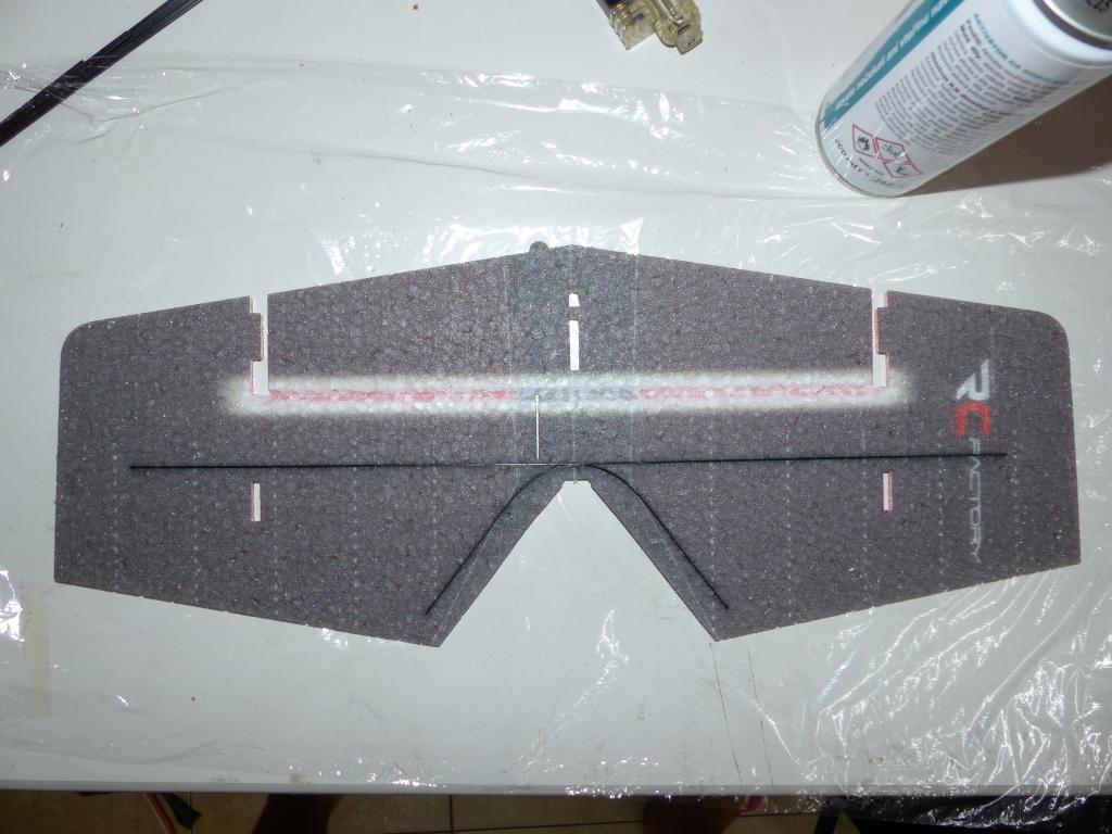 Stavba začíná standardně přehnutím všech kormidel, aby se vytahaly panty a kormidla se pohybovala volně, bez zbytečného namáhání serv.