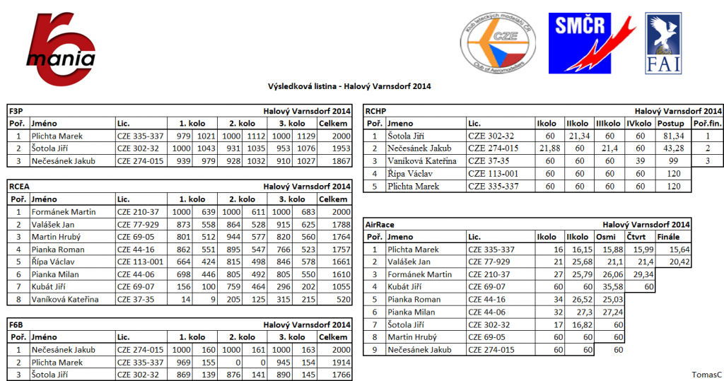 V mém prvním příspěvku je od Tomáše doeditovaný dokument se sestavami podle oficiálních pravidel (obě RCEA, obě F3P). Označil jsem to barevně.