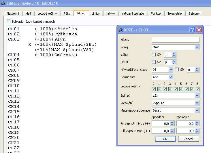 Open Source má tú výhodu, že to môžeš urobiť aj iným spôsobom - letové režimy, krátke/ dlhé prepnutie prepínača, údaj z výškomeru, alebo akúkoľvek zhovadilosť, krivku, subtrim, hodnotu MAX.....