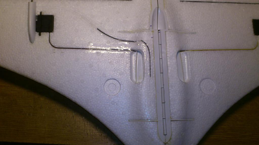 Anteény sú v drážke pre antény. Jedna je v starej drážke, pre druhú je vyrezaná druhá drážka súbežne s pántom smerom ku špičke. Po vložení antény je drážka prelepená obyčajnou lepiacou páskou.