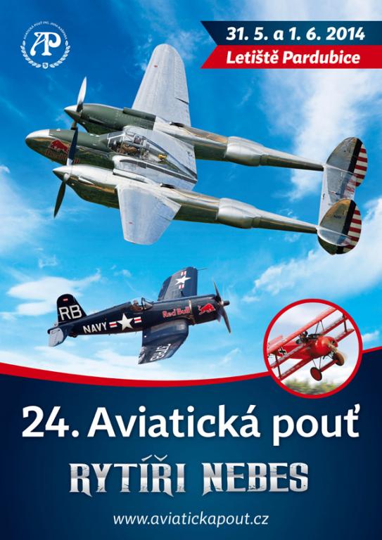 Letošní 24. ročníku se uskuteční 31. května a 1. června 2014 na letišti v Pardubicích. Na rok 2014 připadá hned několik kulatých výročí významných leteckých událostí. Tím nejkulatějším se jistě stane sto let od vypuknutí 1. světové války a právě jedna epizoda z dob Velké války bude připomenuta i v programu 24. Aviatické pouti, která nese podtitul Rytíři nebes. Letecké vystoupení se opět spojí do komponovaných scén s pozemní bojovou ukázkou vojáků v dobových uniformách.