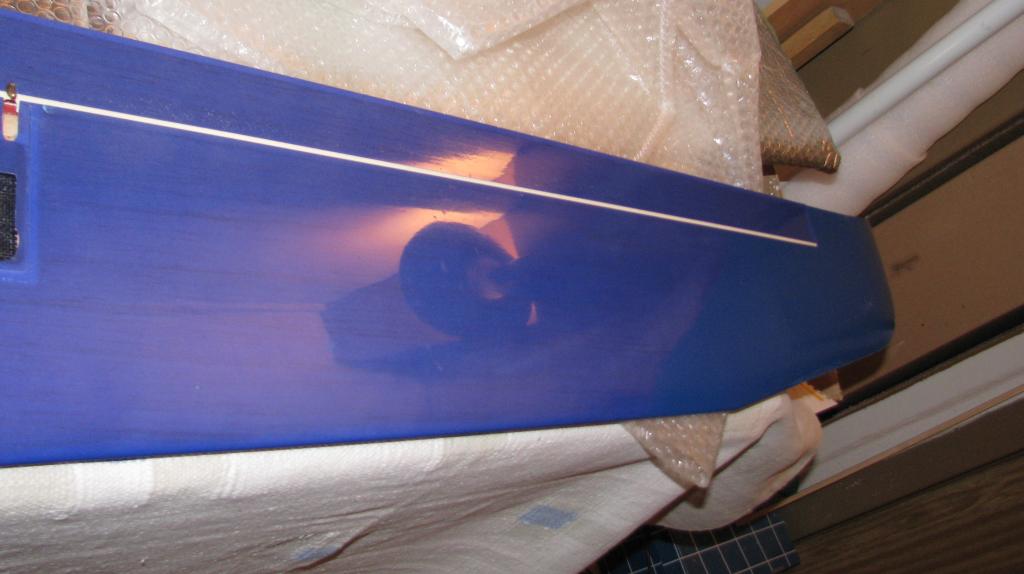 Spodní modrou opravu jsem moc neřešil, tu co jsem tu měl má trochu tmavší odstín, ale ono by to stejně nešlo slušně nastavit, jak v tom puvodním odstínu prosvítá hodně balsa, no prostě zaprášené jéčko, ono to ani nejde moc dobře pak rozbrousit--rozleštit pastou,odleští se okamžitě puvodní barva, hlavně je to spodek a ve vzduchu to asi moc vidět nebude.