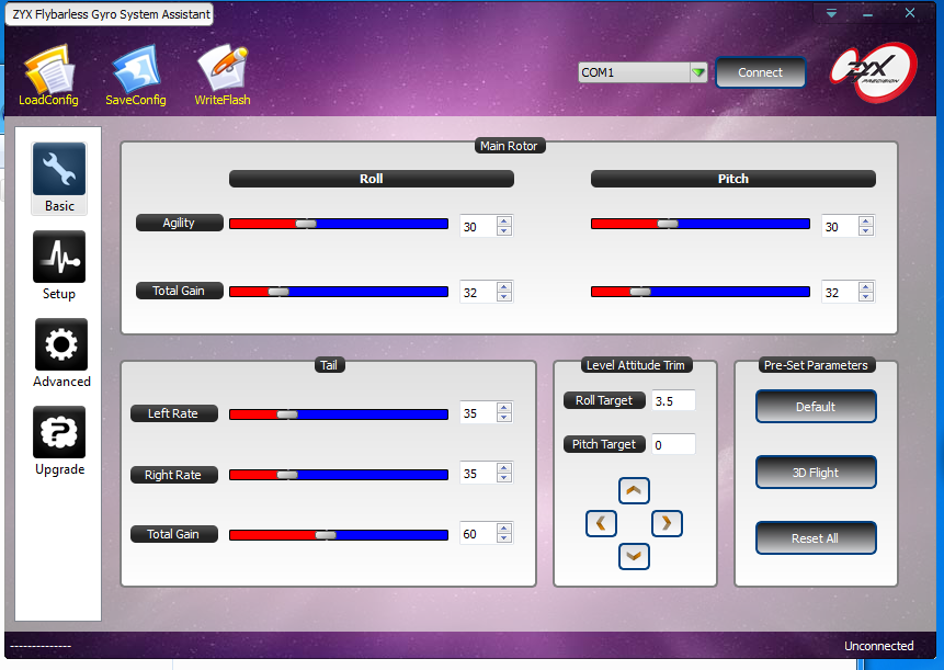 10. po ukončení nastavování uložíš nastavení do souboru v PC, zavřeš program, odpojíš gyro, odpojíš USB adaptér a můžeš letět.