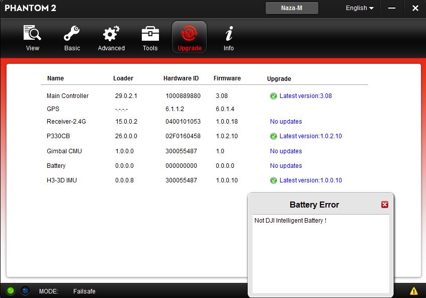 salamander píše:Na DJI fóre sa toto riešilo , musíš ísť do staršieho Fw 3.4 alebo 3.2 už presne neviem, tam baterku upgradovať aby to potom išlo na 3.8 .