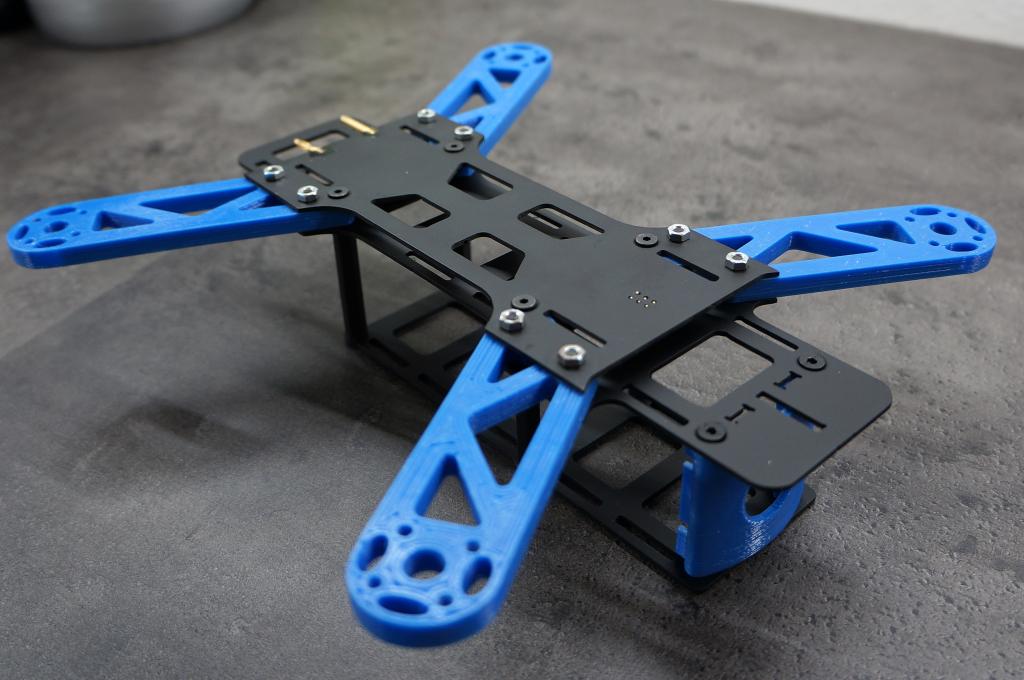 Nemá to byť závodný stroj do lesa. Asi som sa len trochu nudil a toto z toho vyšlo. Hmotnosť ako je na fotke 58g. Ramena z uhlíkového jeklu 12x12 co som vyrábal pre iný projekt a dosky z uhlíkového sendviču s voštinou. Vybavenie: tmotor 1806 1400kv, esc tmotor s6a, doska asi naze32 full,