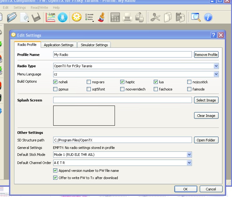 V položke SD Source path - som klikol na tlačítko Open folder a vybral adresár Companionu ("OpenTX") a potvrdil OK