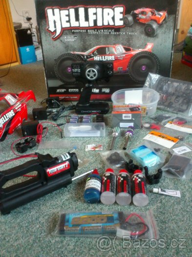 2. monster truck 1:8 nitro HPI HELLFIRE - komplet i s RC soupravou a bohatým příslušenstvím