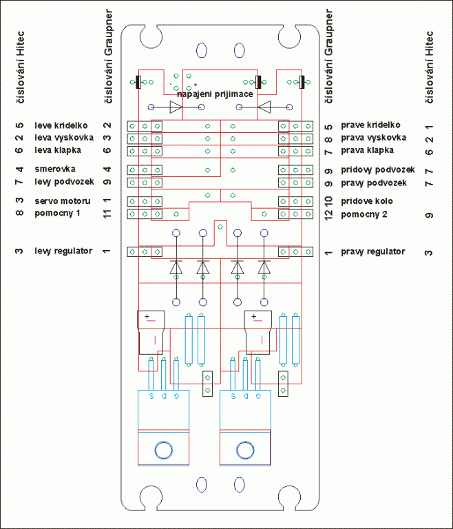 lidi včera jsem se mořil, že si udělám vlastní rozvodnou destičku do letadla. Už jsem nějaké dříve s úspěchem dělal ale tady jelikož tam mám málo místa, šetřil jsem s ním i na té desce. Snažil jsem se to udělat za pomoci univerzální desky, ale jak jsem to hňahňal, tak to nevypadá nic moc - nakonec to funguje, ale nejsem s tím moc spokojen a nejraději bych to předělal. Destička je to co do zapojení naprosto primitivní - jen propojených několik konektorů a kablíků. Ale nejsem si jist, zda to s pomocí univerzální desky předělám nějak výrazně efektivněji než to už mám. Ideál by bylo udělat si vlastní PCB pro tohle zapojení.