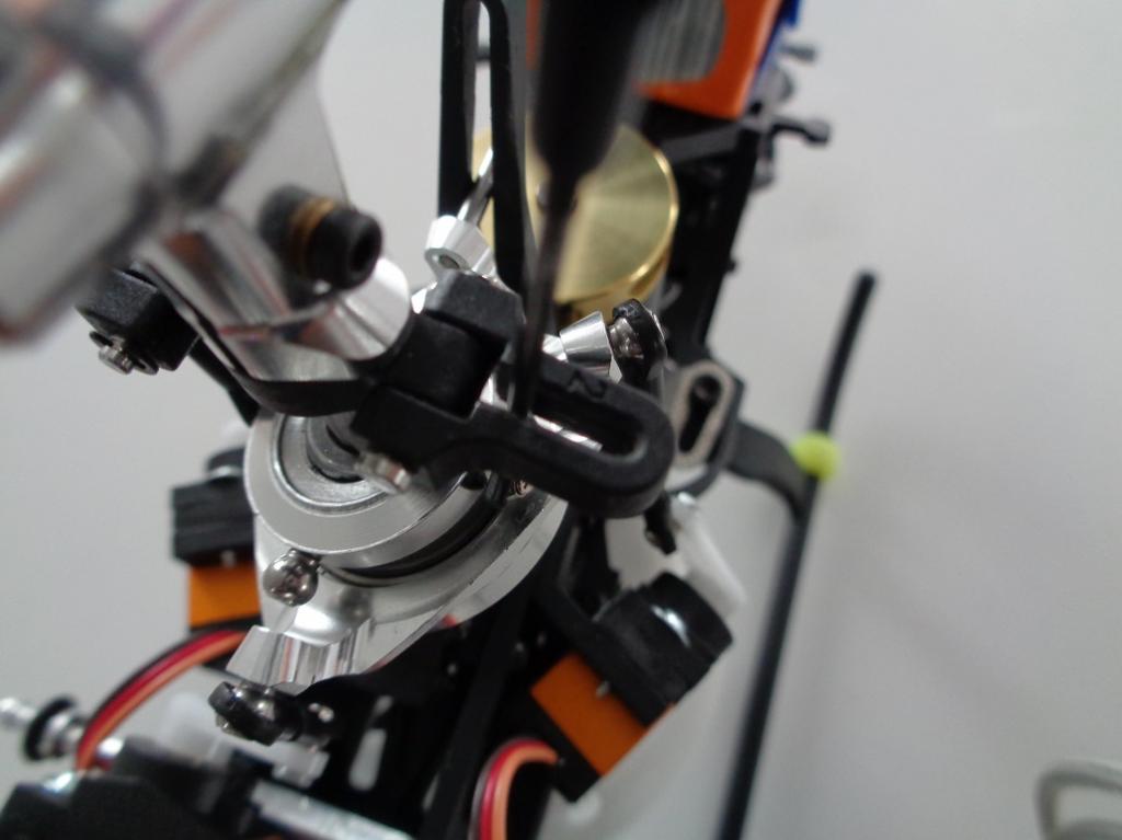 No a vodítka se sice narovnají odstředivou silou, ale při takové výchylce, jak mám, se táhla přiblíží k hlavní hřídeli a drážka ve vodítku už nedostačuje - táhlo se opře o vnitřní konec drážky ve vodítku a prohne se, že by mohlo i vyskočit oko z kuláče, a proto ta úprava (propilování) vodítka viz obrázek. Přitom délky táhel a páky serv mám podle manuálu, gripy kovové z MT360, ale ty jsou geometricky shodné s plastovými FBL gripy. Z toho důvodu jsem se ptal, jestli to někdo nemá nastavené na ty velké úhly.