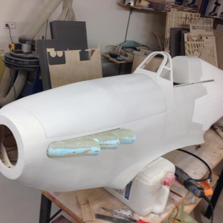 Zase kousek hotový, dodělal jsem kužel a napasoval vrtuli. Dnes jsem taky dodělal závěsy a bomby a vypadá to pěkně, nalepím nýty a jdeme stříkat. :D