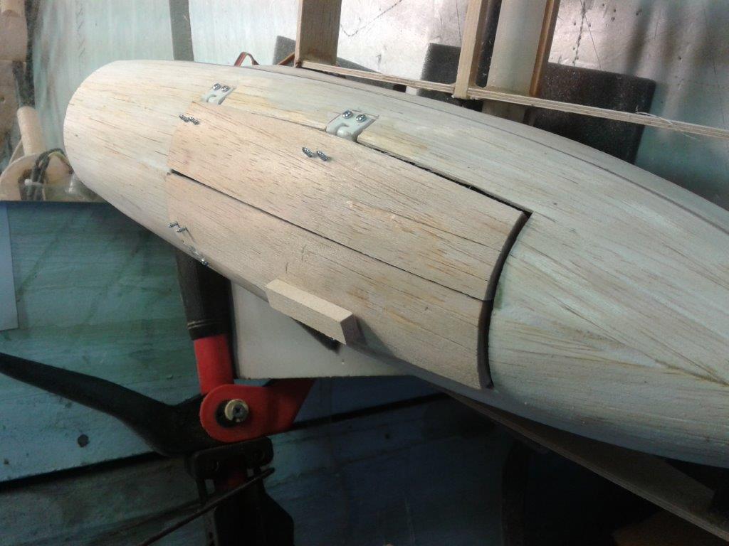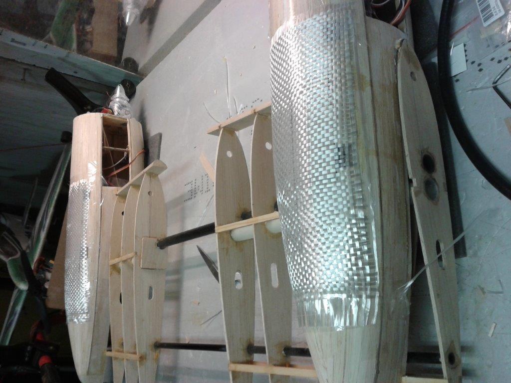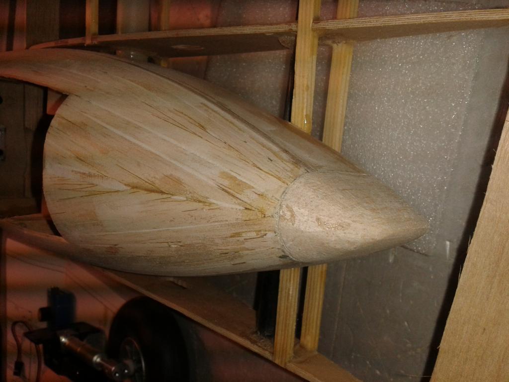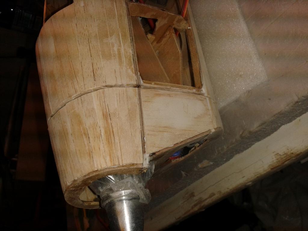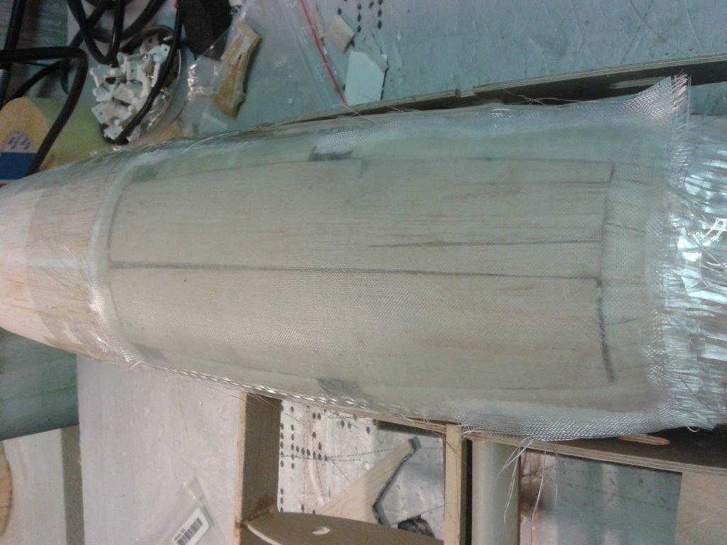 Po krátké pauze na stavbu cvičné Spectry zase kousek. Motorové kryty podlepené s nalepenou balzou 2x7mm, připravené k vybroušení tvaru.