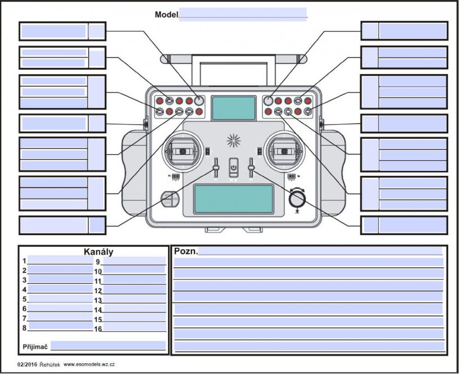 Rozšířené schéma přepínačů na Taranis X9E v PDF, které se dají vyplnit na počítači.