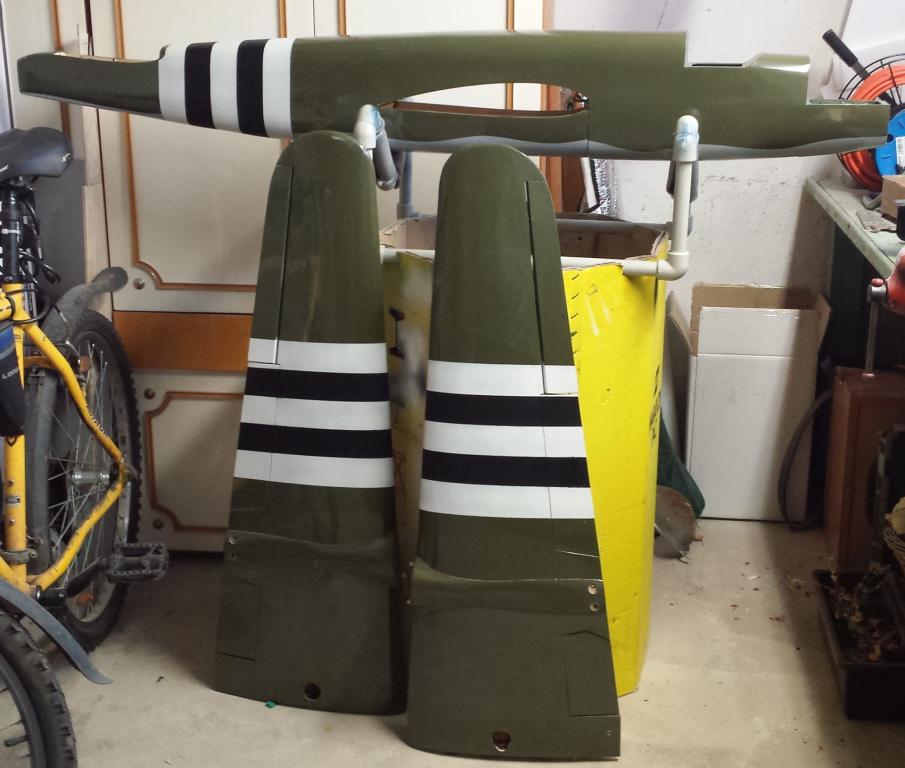 Práce na ocase jsem zahájil přepotažením směrovek; určitě nechci zachovat zbarvení z krabice: