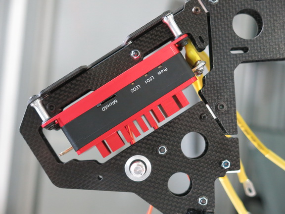 Ale ke slíbenému záletu: Trápil jsem se s přegyrováním vrtulky. Ve visu OK, v normálním letu OK, ale když jsem přidal (a jako že to lítá jak sviňa rychle), tak se vrtulka zachvívala. Pořád jsem hledal chybu v nastavení bezpádla, ale pak mně bylo porazeno, že tam mám asi moc dlouhé vrtulkové listy. Vycházel jsem z běžného osazení sedmistovek a použil 105mm dlouhé vrtulkové listy (a jestě k tomu Edge). Srimok má ale nezvykle účinnou vrtulku a gyro to nepobralo a neby schopné "gyrovat" tak málo. Po namontování 95mm dlouhých listů se vrtulník okamžitě uklidnil a stačilo již jen doladit přepákování k tomu, aby se i při lopasech na maximálce choval jak má. Mimochodem firmware 1.31 pro CGY750 je pěkně povedený a léta hodně dobře už v továrním nastavení. Na rozdíl od předchozích verzí prakticky nelze přegyrovat rotorovou hlavu. Zatím jsem neletěl s ničím lepším. (Ale musím přiznat že nemám zkušenost s Fau barem)