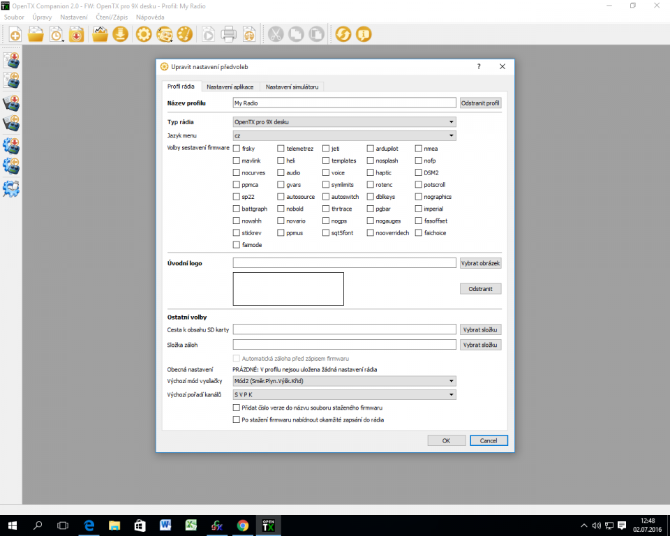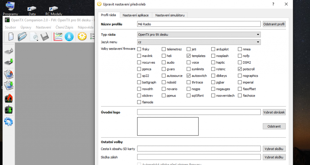Pip píše:Jaký používáš VF modul? Originál k T9X- FlySky, nebo FrSky. Pokud FrSky, tak ten by bylo potřeba zaškrtnou v sestavě.