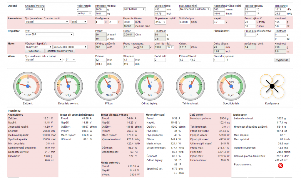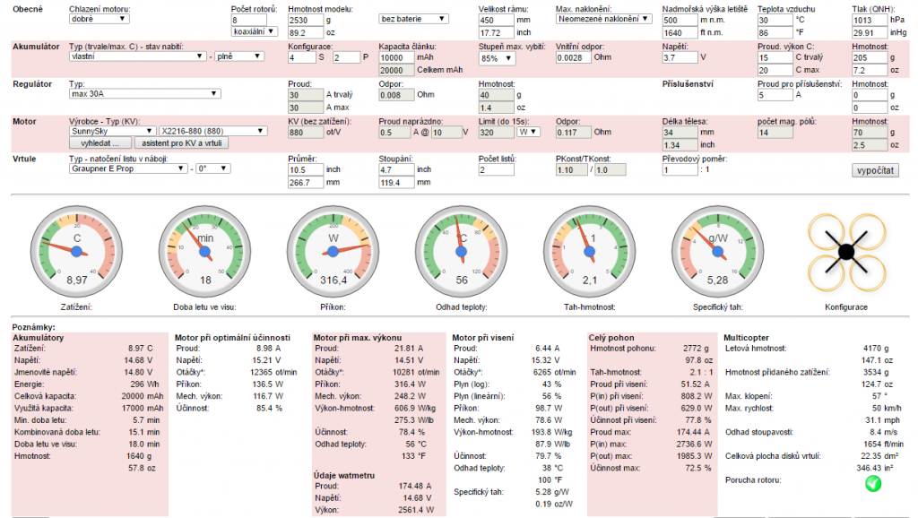 par variant jsem zkousel na strankach ECALC multikopter kde pocitam s odchylkou +/- 15% jak udavaji