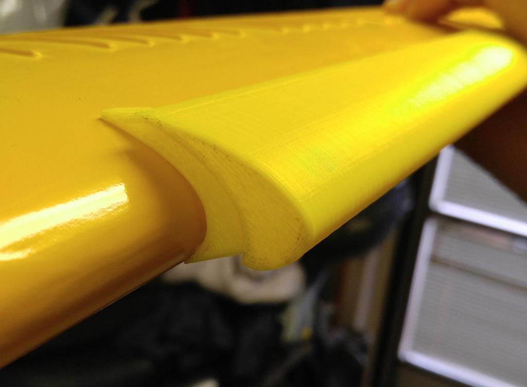 Nevím jaký má orginální slot povrch, osobně bych to tiskl jedním prerimetrem a vytvořil uvitř žebra nebo vhodnou výplň. Pokud to vytiskneš z ABS ideálně bílého/béžového, nebo v barvě modelu. Pak to není problem přebrousit, přetmelit a stříknout barvou co dobře kryje, například na palstikové modely. Podmínkou je, ale tam mít ty žebra nebo výplň, jinak by to nešlo brousit. Výsledkem je dostatečně pevný výtisk a pohledově neroznatelné od klasicé konstrukce. Váhově to pak proti PLA v popsané úpravě dokonce vychází o nějakej gram lehčí a drží to a neloupe se a nevadí tomu slunce/teplo :)