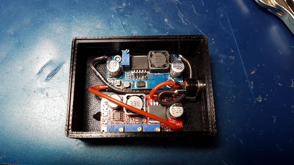 ... Ovšem s tímto jsem se nesmířil a jal se vývoje vlastní nabíječky. Akumulátory mají totiž zespodu kontaktní plošky pro dock který ještě Dji nevydal. Stačilo zjistit zapojení. Po chvíli bádání a měření bylo jasno a stačilo nakreslit a vytisknout kolébku pro akumulátor a zhotovit CC\CV zdroj.. Dále jsem vyzkoušel mezní hodnoty proudu a napětí které akumulátor akceptuje.. Maximální nabíjecí proud je 2,5A a maximální napětí přivedené na kontakty je 13,4V , pokud se jedno nebo druhé překročí zareagují integrované ochrany, akumulátor vybliká kód chyby (nadproud, přebíjení) a odpojí zdroj.. Pak už vytvoření nabíječky nic nebránilo.. Použil jsem mírně upravené zapojení nabíječe LiIon od Miloše Zajíce. Toto funguje ale nabíjecí proud je 1,2A což mi nevyhovuje a pro větší proudy už se zapojení moc nehodí a navíc není možné používat nabíječku v autě kvůli nízkému napětí.. Nakonec jsem pořídil tento https://arduino-shop.cz/arduino/1328-lm ... 85515.html CC\CV zdroj kde jsem nastavil omezení proudu na 2A a koncové napětí na 13,2V. K tomuto zdroji jsem přidal Step-UP měnič který zvyšuje na 15V a díky tomu je možné nabíjet akumulátor i ve vozidle ze zapalovače. Akumulátor sám automaticky ukončuje nabíjení a odpojí se od nabíječe při plném nabití. Cena tohoto nabíjedla je lidových 200CZK