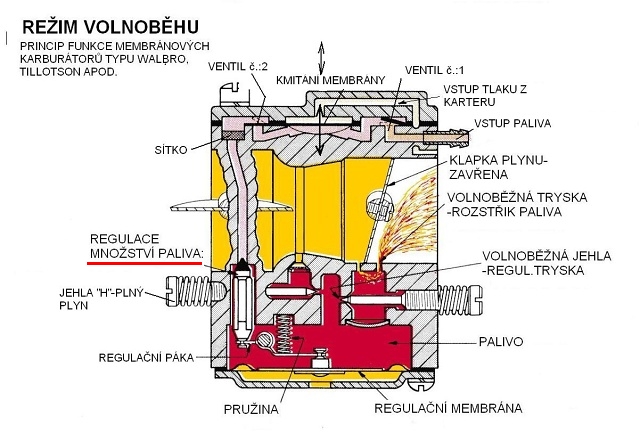 Když to dělá na 99% karbec, tak máš ho správně složenej? Koukni sem, http://www.lmkbabice.cz/?p=216 Máš tu dvojzvratnou páku, co přenáší polohu membrány na jehlu ventilu zasunutou na obou stranách do drážky čepu membrány a jehly? Pak mě napadá, jsou průchozí trysky volnoběhu? V některým Walbru jsou dvě, v některým tři. Blbě se čistí. Máš jak klapku sytiče, tak plynu v uzavřený poloze hlavou šroubku ven, tedy nemáš některou přetočenou o 180 stupňů? Co to kruhový velejemný sejtko v přívodu benzínu, není něčím zalepený? A znova se ptám, máš správně poskládaný podložky mezi motorem a karburátorem a je v těch podložkách průchozí a těsný kanálek, co přenáší tlak z karteru do pumpy?