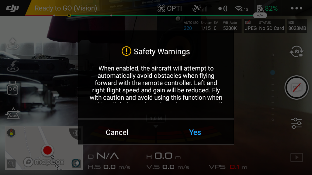 Právě že mi to vypsalo varování o nedostatku světla. Když jsem v pokoji rozsvítil, už se to nestalo a Mavic zůstal v režimu OPTI. Ale jak jsem psal, je divné, že se Ti to stalo venku, kde je světla i satelitů dost. Vyzkoušel jsem to teď, zatáhl jsem v pokoji závěsy. Přikládám screenshoty.