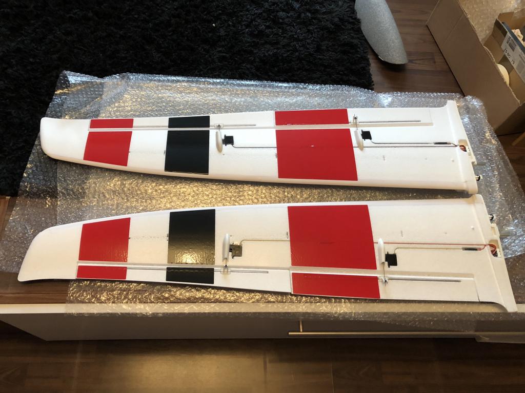 Asi není moc co popisovat, křídla (dvojdílné s nosníky ze čtyřhranné trubky ze slitiny hliníku s uhlíkovou výplní) zasuneme do trupu. Chválím ty jejich šestikolíkový zelený konektory Multiplex upevněný ve speciálních držácích v kořenech polovin křídla a v trupu – zasunutí polovin křídla znamená zároveň i propojení konektorů. Ocasní plochy jsou z rovněž z pěnového ELAPORU s výztuhami z uhlíkových nosníků a tenkostěnných trubek z nerez oceli. Dvoudílná vodorovná ocasní plocha se upevňuje ke kýlovce pomocí uhlíkových spojek a zámkového mechanismu pro snadnou montáž a demontáž. Pro pohon modelu slouží střídavý motor ROXXY C35-48-990kv se 70 A regulátorem se spínaným stabilizátorem napájení BEC ROXXY BL Control 755 S-BEC pro zajištění spolehlivého napájení palubní elektroniky se 6 servy.