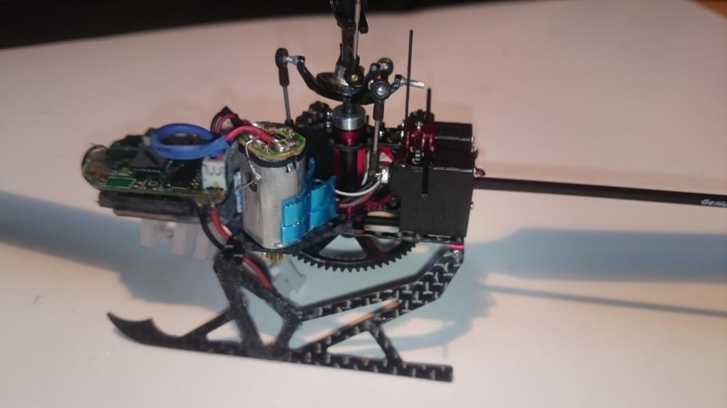 Nejspíš při manipulaci u nandavání baterky, jsem musel nějak pohnout kablíkem od motorku tak, že se zaháknul někde o servo a kablík se z motorku vyškubnul. Připájet to zpět bylo docela o nervy a trochu si začoudil ten plast na motorku