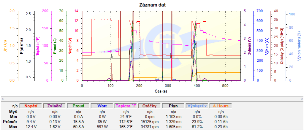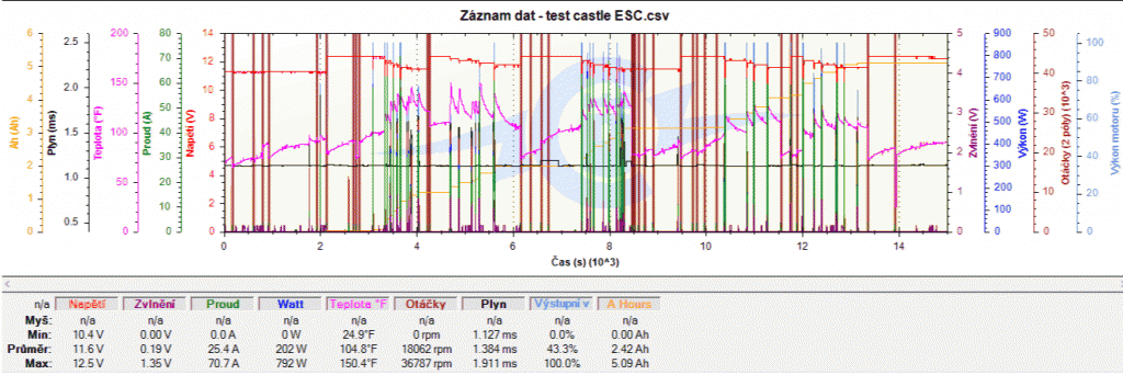 Druhý den jsem to znovu zkusil s menší vrtulí 12x6,5)(byla po ruce). Motor běžel nekolik vteřin a byl cítit (ne vidět)kouř. Motor byl horký a regulátor Castle Phoenix ICE Lite 75 taky.Neví někdo, jak motor proměřit, nebo o někom, kdo by to udělal?. Dík.