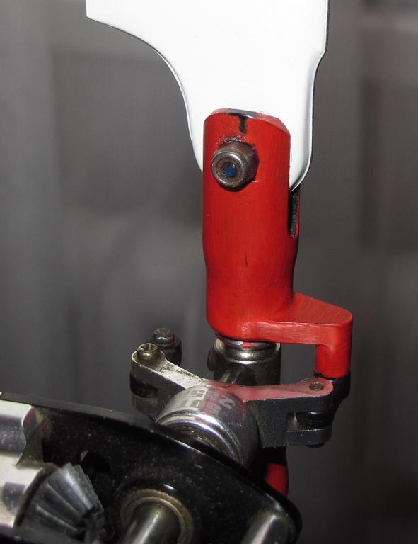 Align i Helitec mají u kořene tloušťku 4,9mm, tahle má 5,03mm a je to sakra znát. Na focení super, vždycky mě vytáčelo když to spadne dolů a vypadá to divně ale jak se to bude chovat za letu ? Nikdy jsem jí takhle neměl a záměrně bych jí ani tak nedotahoval. Šrouby jsou fakt krátké, matičky drží vlastně na zalepení Loctitem protože konec šroubu prakticky nedosahuje na těsnící kroužek.