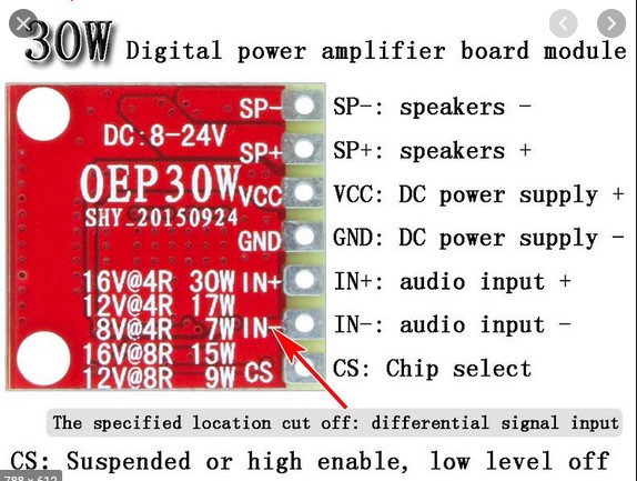 Jmenuje se OEP30W, je skutečně miniaturní a skvěle funguje. Je ve třídě D (digitální, PWM modulace), takže se nehřeje.