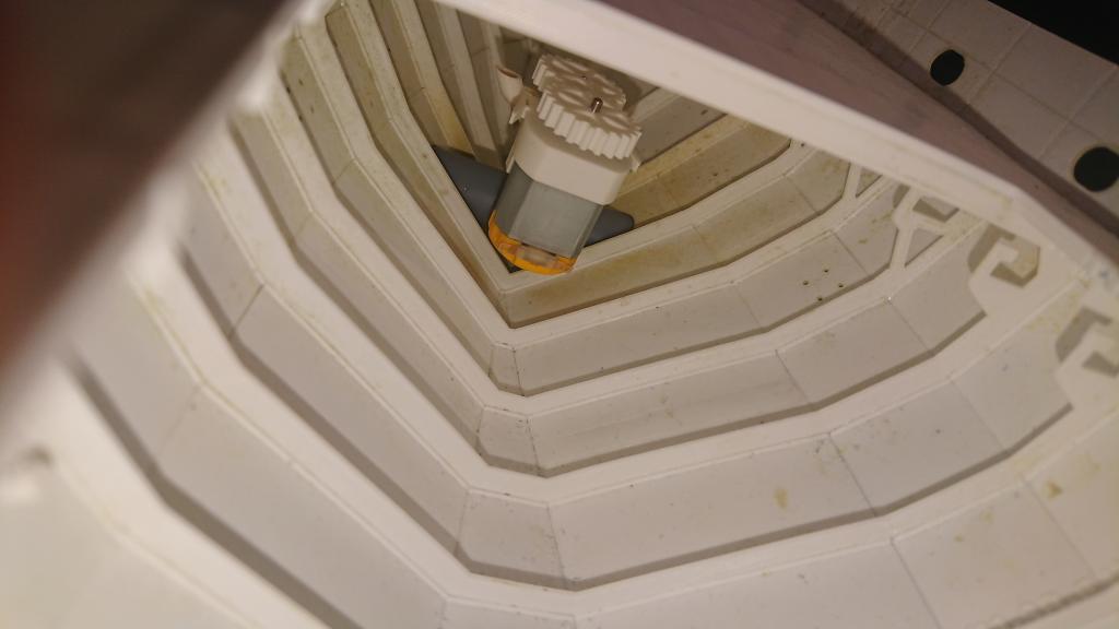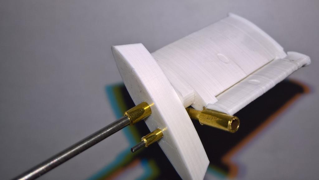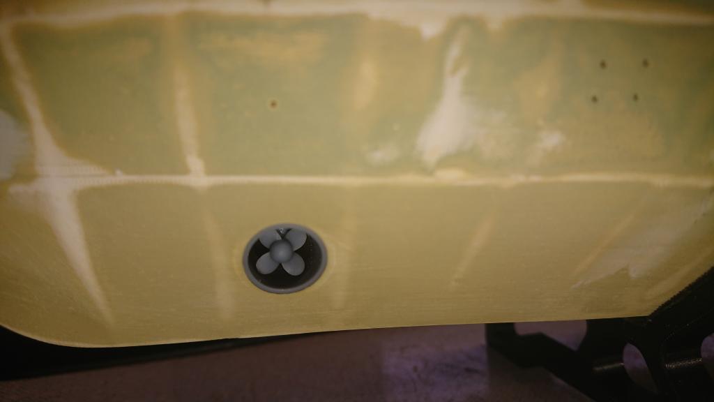 Bow Thruster v trupu. Po nabarvení vnitřku se tam ještě dolepí mříže, ty už jsou také vytištěné.