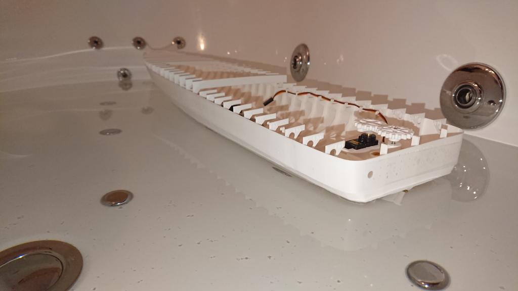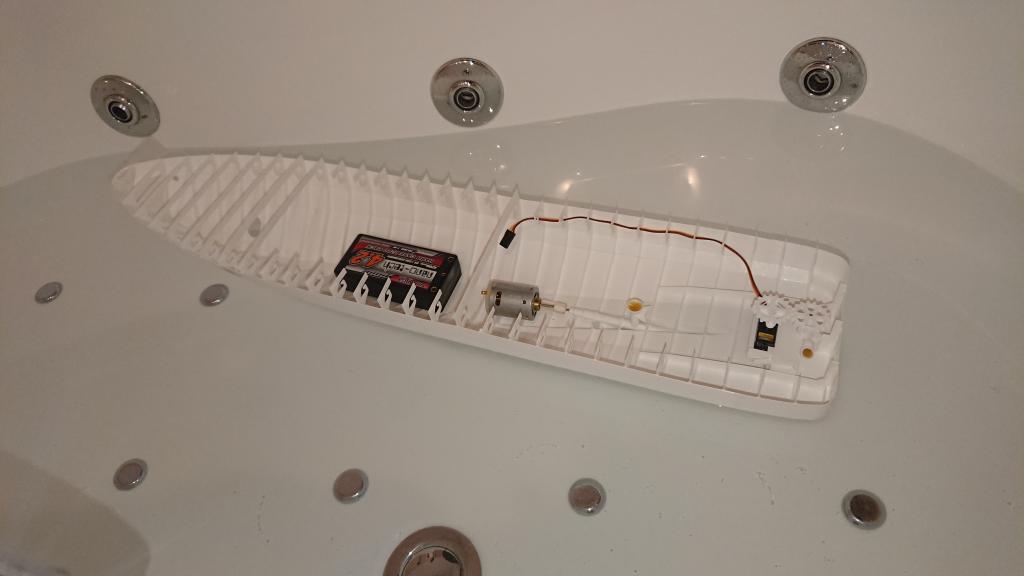 Trup je bez problémů vodotěsný tak, jak je slepený. Lepené spoje je potřeba lepit precizně, není to moc velký problém, vše do sebe velmi dobře zapadá, ale chce to preciznost a držet přesně tvar při lepení a dávat pozor na kroucení. Jinak je to ABS, to vodu nepustí.