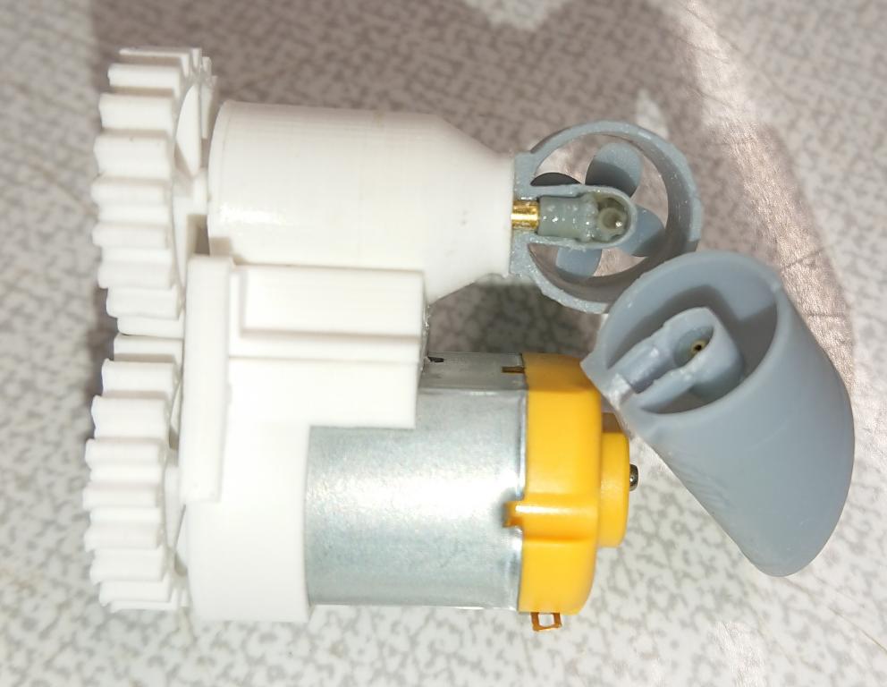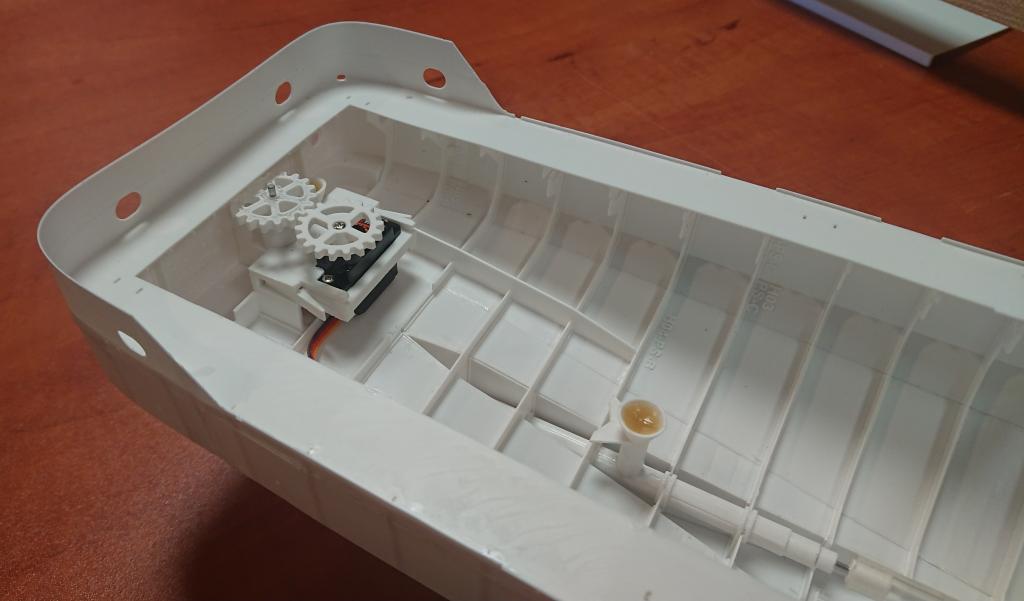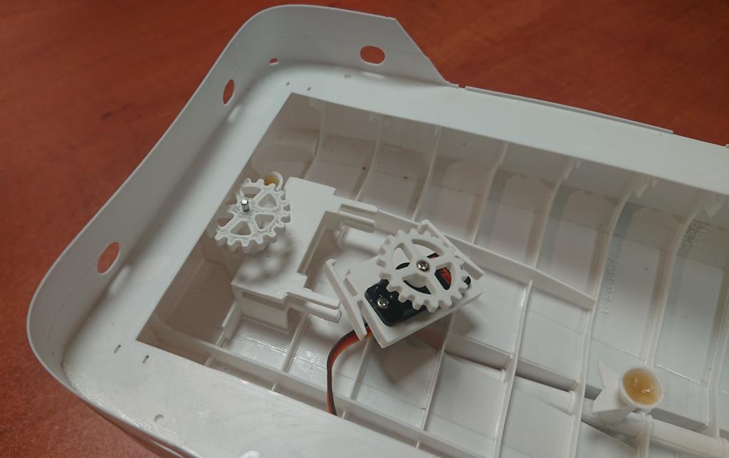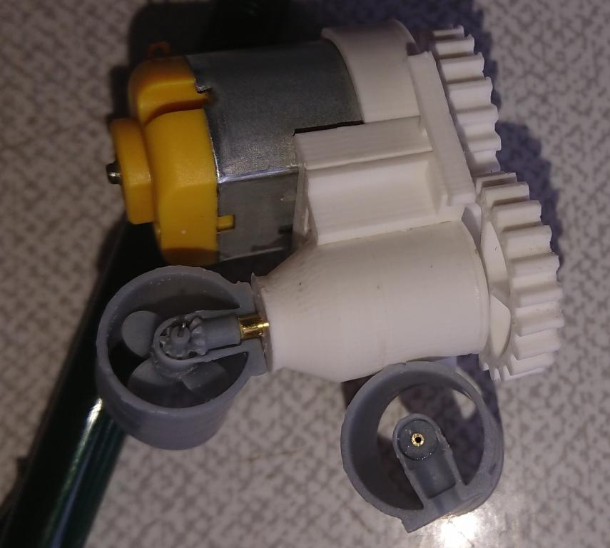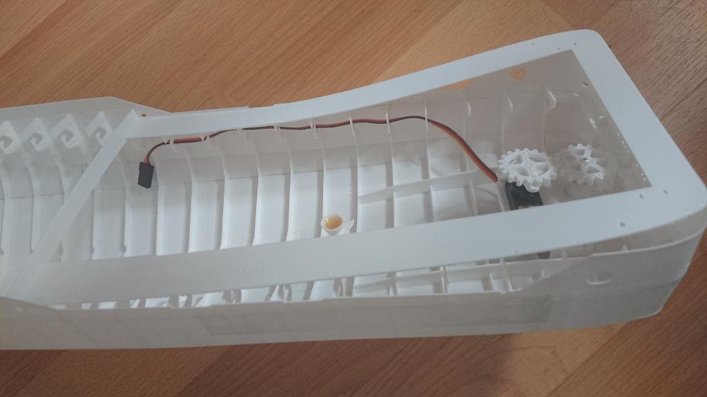 A jedna opravdu malinkatá lahůdka, podařilo se mi vyrobit i funkční bow thruster s průměrem jen 12mm. Bílý materiál je ABS, tištěné tryskou 0.25mm, šedý je tištěný resin s vysokým rozlišením. Uvidím, co to vydrží, po otestování ve vodě se zatím zdá, že OK. Ozubená kolečka budu tisknout z mechanicky odolného resinu, tohle je jen na zkoušku do mého modelu, z obyčejného. Ve finální verzi přibude i možnost sestavit to s boční lopatkou, sestavování s těmi ozubenými kolečky chce opravu velkou přesnost (je to titěrné, tak pro hodináře