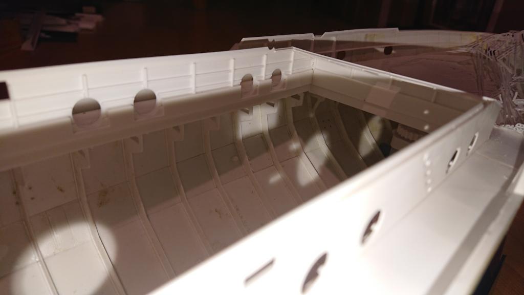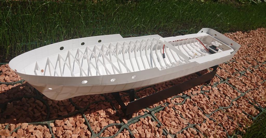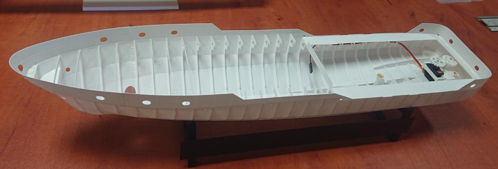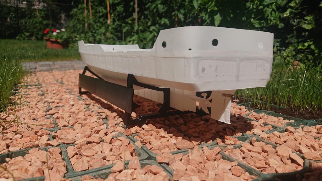 Trup už je dokreslen celý, včetně palub, bortu a veškerých detailů. Po nalepení detailů bortu už to půjde na finální povrchovou úpravu a do barvy.