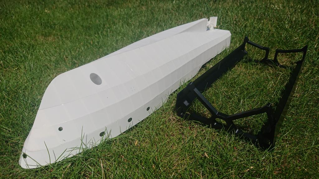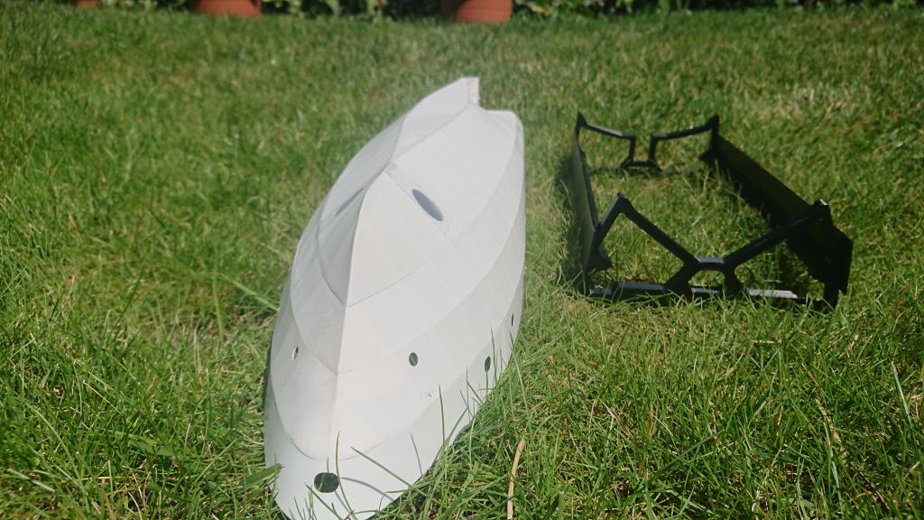 Po měsíci je téměř hotový trup, zatím bez detailů. Některé budou tištěné na SLA tiskárně, aby byly dobře vidět i šroubky.