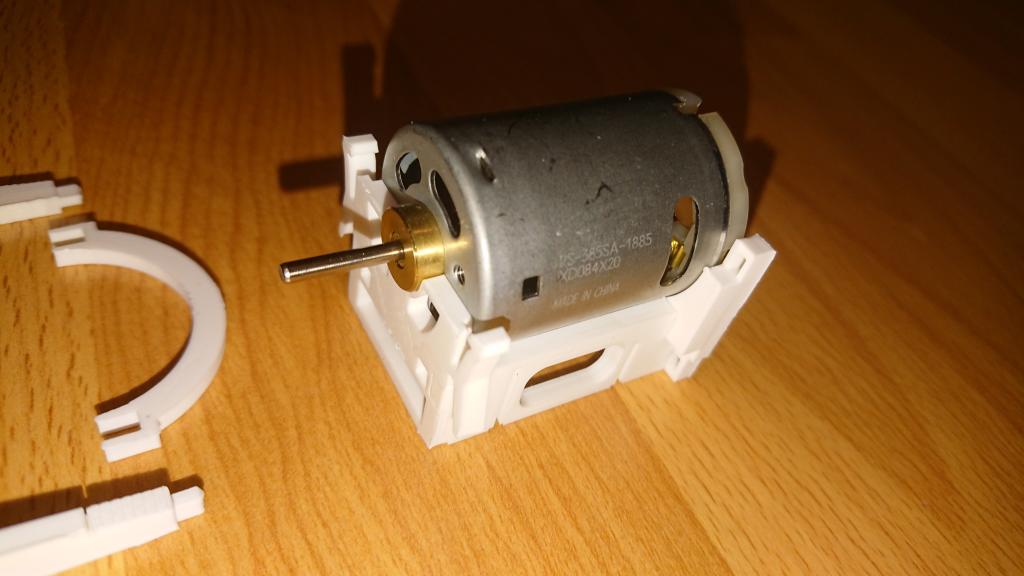 Dokreslil jsem i uchycení motoru. Motor se tam položí, nasune se elastická spojka, a zajistí nacvaknutím horního úchytu. Vejde se tam motor s průměrem 27.7mm.