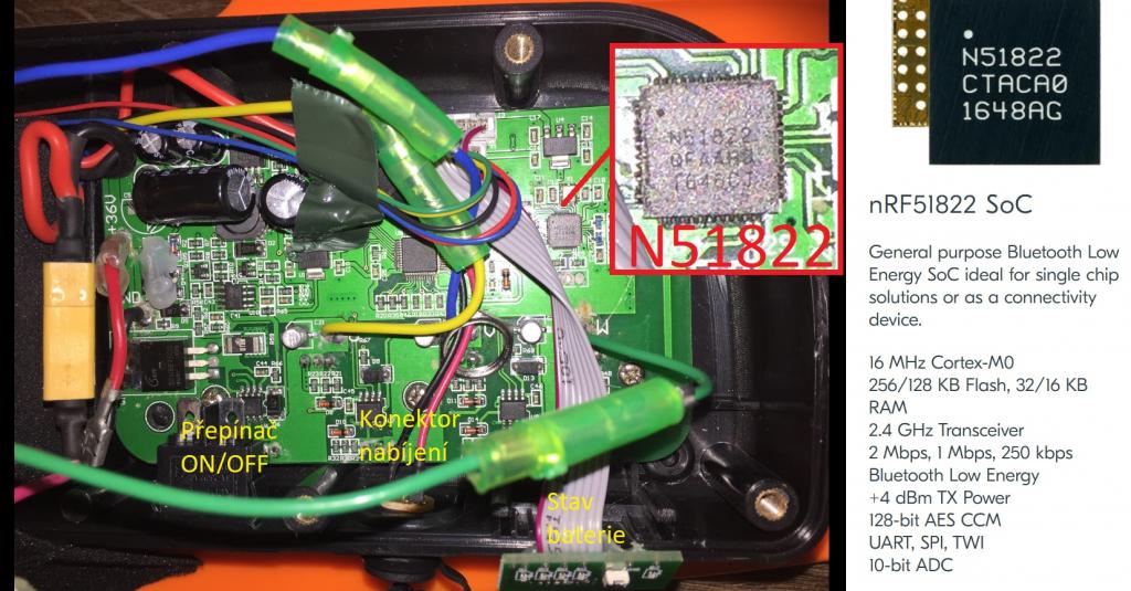 Dostal jsem od známého elektroboard WORKER Smuthrider. Bohužel k němu chybí originální ovladač 2.4 Ghz. Předpokládal jsem, že po otevření pouzdra s elektronikou objevím připojený přijímač na konektoru, tak jak je tomu standardně u RC modelů a vyměním jej za nový z RC soupravy. Bohužel jsem nalezl patrně přijímač (čip N51822) navržený přímo na desce. Chtěl bych se Vás tedy zeptat, zda je možné i integrovaný přijímač napárovat s jakýmkoliv 2.4 Ghz vysílačem? Případně když znám typ přijímače, zda musím použít speciální vysílač? Máte někdo nějakou radu jak to rozběhat? Vzhledem k foru asi budete vědět mnohem více..