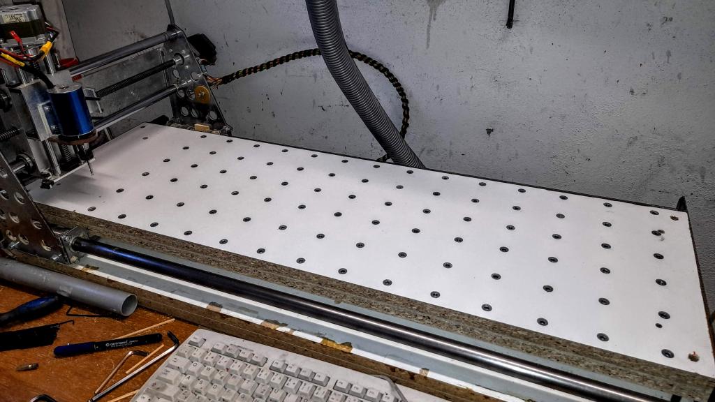 Dřív to jezdilo tak 1600mm/min přejezdy když byla dobrá konstelace, teď to spolehlivě jede ve všech osách 2200mm/min (StepFour stejně víc než 2250 nepustí) a do materiálu to takovým fofrem tak jako tak nepustím.