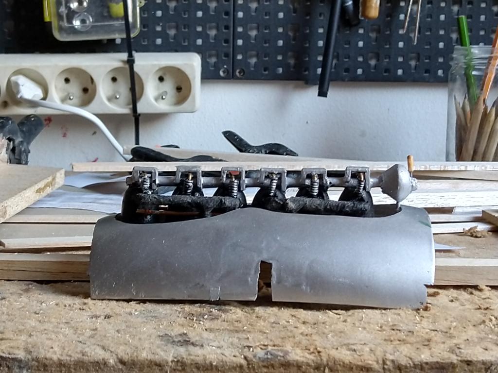 Dodělal jsem skomaketu motory. Kamarád to zhodnotil klasickým citátem z Pelíšků: "Pěkný, to muselo dát práce. A přitom, je to taková blbost, že jo? :lol: A to ještě větší část nebude vidět, protože bude schovaná v motorovém krytu. Teď se pustím do výroby výfuků.