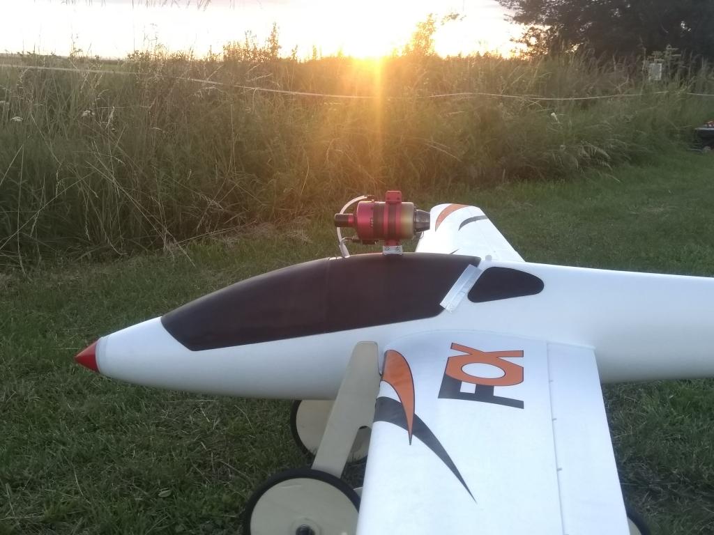 Když už to nějaký čas létalo, dozvěděl jsem se od jednoho kolegy který létá laminátového Foxe, tuším 2,7m se stejně uchycenou turbínkou nad kabinou, že by měl tah směřovat na trup do míst kde je kořen směrovky. Tím pádem já bych měl vyosit ještě mnohem víc dolů.