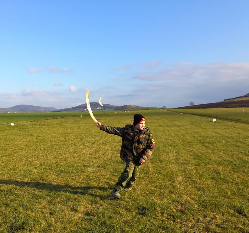 O víkendu jsme se s Jirkou Vejmolou vydali na letošní první házedla. Počásí přálo, ráno bezvětří, později vítr 5-8m/s. Letadlo mám v provozu momentálně pouze jedno a seřízené je spíše do klidu i tak to dalo na vítězství pěkným výsledkem 577sec , Jirka měl 554 a byl třetí a to se jednou shodil na deter! Moje žluté éro seřízené na jeden kruh, lítalo 500-900m daleko, takže jsem se při 10ti startech a několika průbách i něco nachodil