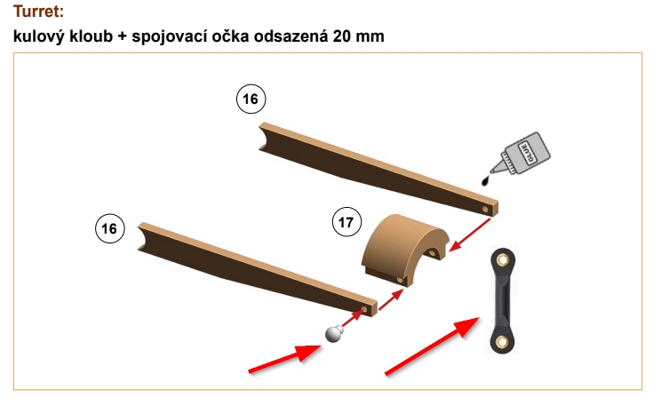 kulový kloub + spojovací očka odsazená 20 mm"