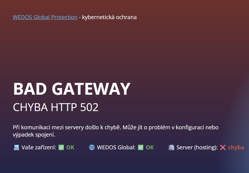 To je za mě nesmyslně utažená bezpečnost od Wedosu. Zkoušel jsem to řešit, ale je to jako na úřadě. Ta stránka není ve skutečnosti 502.