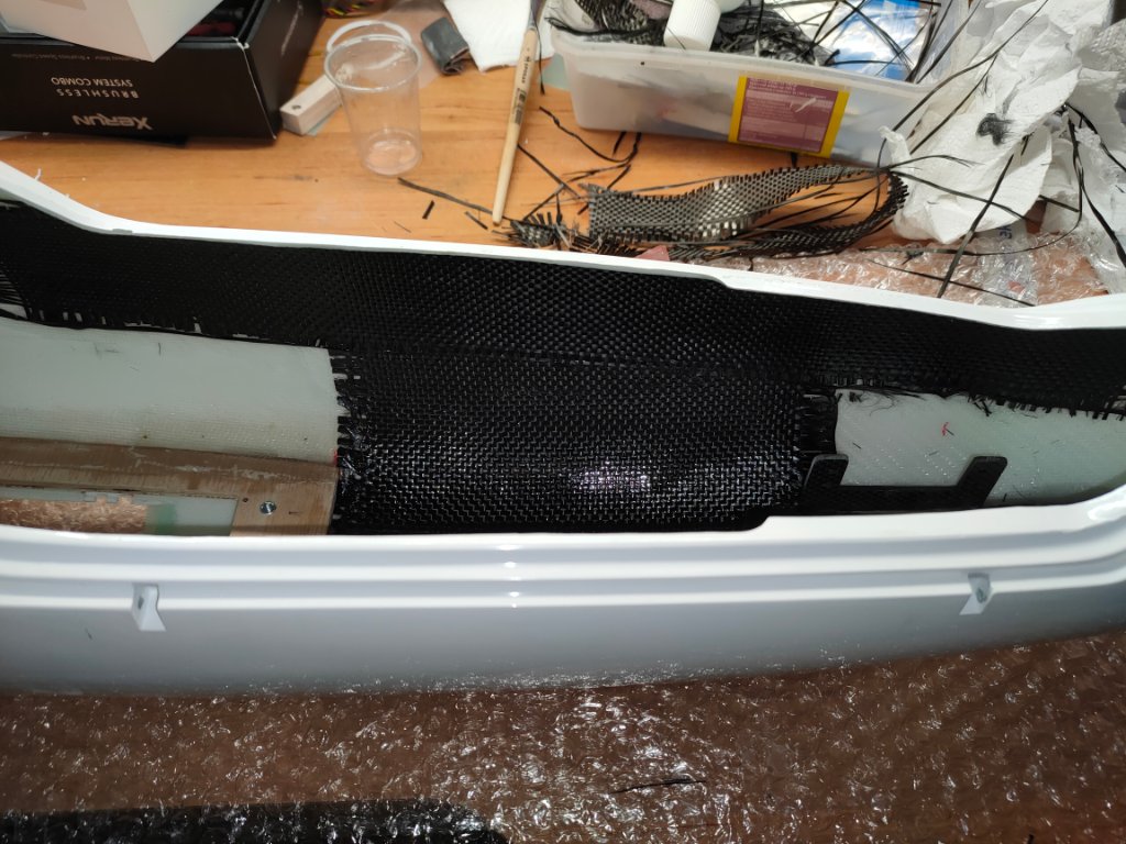 Přidal sem do čumáku trochu kosmického materiálu na zpevnění, asi to není úplně ideální takhle to přilepit, ale je to na omak znát. Příště si tu vrstvu nechám dát ve formě pod vrstvu skla.