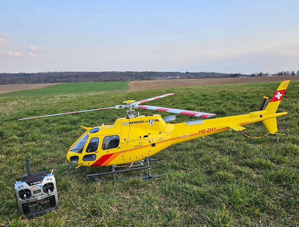 Vždycky jsem měl rád Hughesy, o něco víc toho policejního i když oranžová metalická Helisika je prostě umikátní barva. U AS350 jsem nenašel podobnou tutovku a žlutou Heliberninu jsem si vybral spíš proto že se mi vždycky líbila i na letadlech a je dobře vidět. Vlastně až pak ve vzduchu se mizačala líbit mnohem víc než jsem předpokládal a díky mnohem detailnějšímu zpracování ( kokpit, nýty ) nad oběma Hughesy tak trochu vede. S Hughesem ale lítám radši protože je předvídatelnější a ochotněji reaguje na kniply. Myslím že je to dvěma věcma. Za prvé je o půl kila lehčí a za druhé tam hraje roli aerodynamika trupu. AS350 má sice takřka stejnou mechaniku, pouze trubka je o 2,5cm delší. Má i stejné převodové poměry na vrtulku ( 1 : 4,5 ), třílist navíc nemá stejný kroutící moment jako pětilist u Hughese. A přesto proti Hughesovi vrtulka nestíhá. Proto byl od začátku problém s couváním. Ještě tak za bezvětří ale jak trochu foukalo, couvaná osmička byl problém. Konec konců právě při ní loni odešly ty převody a přežila to jenom katapultovaná kabina.