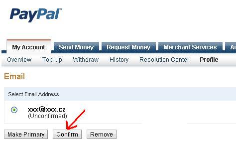 1. Pokud je tam napsáno např. (PRIMARY) pak už je vaše emailová adresa v tom PayPal účtu potvrzena a tudíž ji není potřeba potvrzovat.