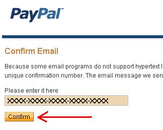 9. Po načtení nové stránky v ní zadejte do editačního pole váš Confirmation Code z toho emailu co vám přišel od Paypalu a poté klikněte na tlačítku Confirm jak ukazuje červená šipka viz obrázek obr6.