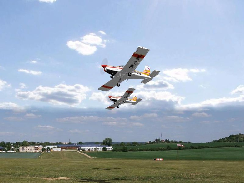 Kluci, ve Phoenix variantě se mi trochu nezdá kolizní zóna reprezentující lehký svážek v linii dráhy směrem na Komín. Hodně je to znát s rychlými letadly jako GeeBee. Při plochém přistání bourám do země metr nad ní v pomyslné vzdálenosti zhruba 100m od sebe